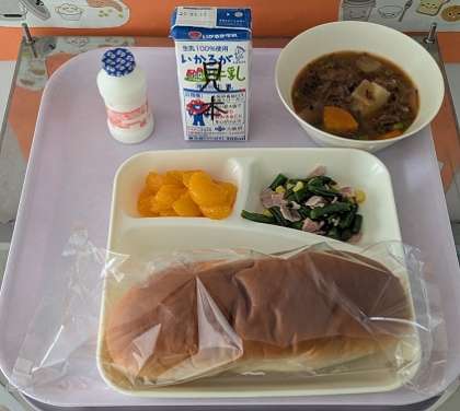 みかん(缶) 発酵乳 黒糖パン 牛乳