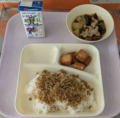 鶏肉とじゃがいもの煮もの あつあげのしょうゆだれかけ