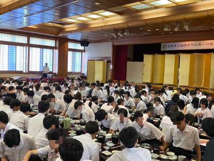 3日目の朝食をいただきました。最終日の活動である福岡県と山口県をはさむ門司港と下関エリアでの班別活動に向け、準備万全です。