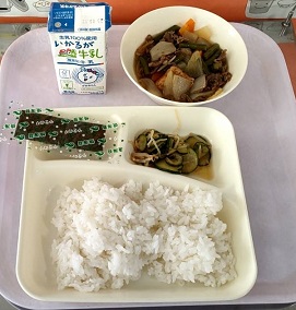 牛肉と野菜のいため煮 きゅうりともやしのおひたし