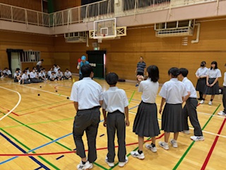 本日7月4日(金)の5、6時間目に、1年生は特別支援教育の一環としてボッチャの体験を行いました。ボッチャとは、肢体不自由の方でもできるパラリンピックの正式種目です。投球練習をしたあとクラスごとに実際に試合をしました。とても楽しそうに取り組んでいました。