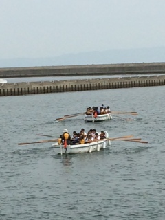 みんなの息を合わせてカッターを大海原に漕ぎ出しています