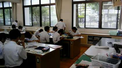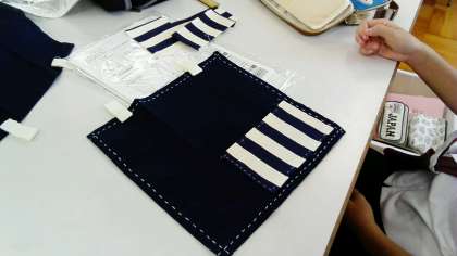 1年生家庭科では、ウォールポケット作りに挑戦しています