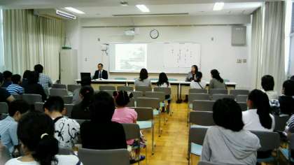 学校の様子を、学校紹介DVDやパワーポイントを使って、紹介しました