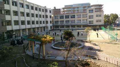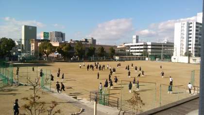 広いグランドと中庭は、生徒でいっぱい