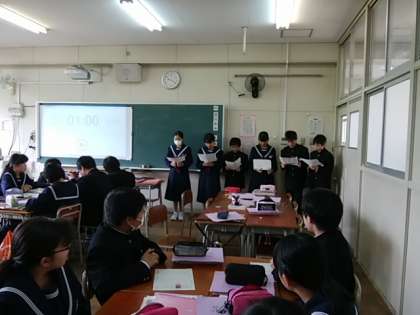 「朝のリレー」を、班で発表します