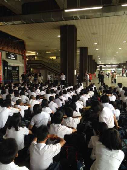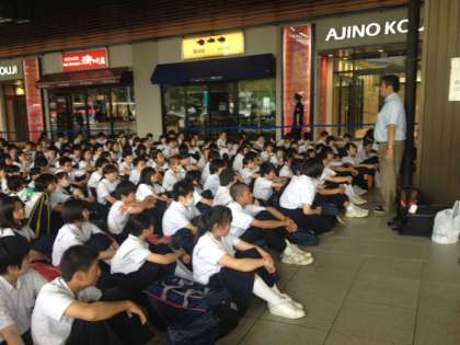 おはようございます。旭陽中学校3年生は、無事に新大阪駅に集合し新幹線に乗車。
