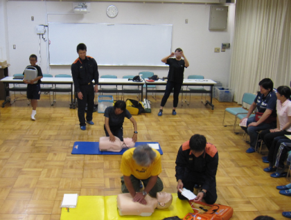 旭消防署の方が来られて、心肺蘇生法、AEDの使い