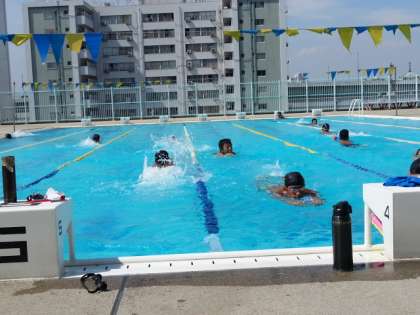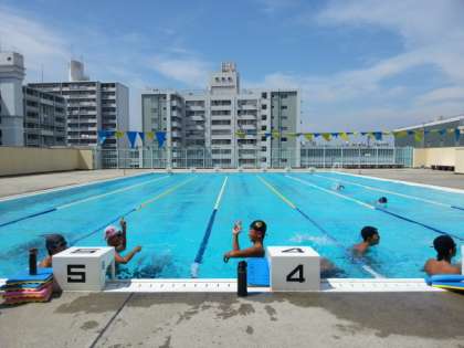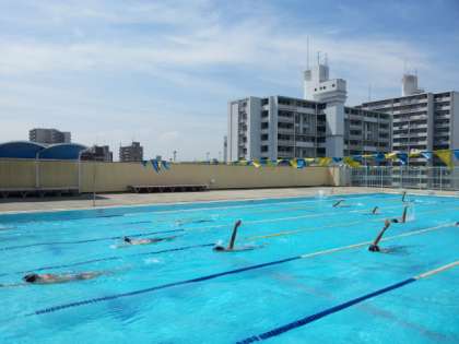 毎日、屋上のプールで、熱心に練習に励む水泳部♪