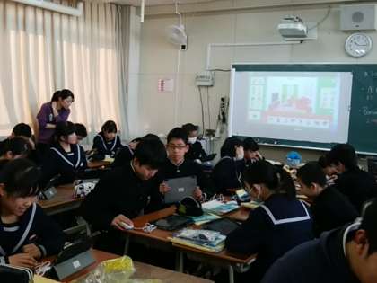 1年生英語~タブレットの部屋に、スタンプを貼りつけましょう~