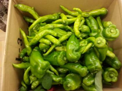 段ボールいっぱい収穫されたしし唐