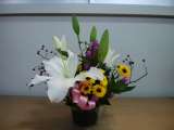 お花屋さんでは、フラワーアレンジメントにも挑戦させていただきました とっても上...
