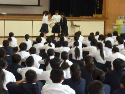 1・2年生の代表から、3年生にその鶴が手渡されました。