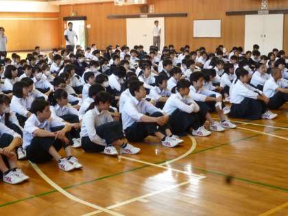 今日の全校集会では、「いじめについて考える日」ということで、校長先生からインターネットによるいじめをテーマにお話がありました。
