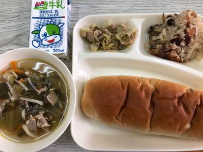 今日は、鶏肉、金時豆、しめじの入ったおこわです。