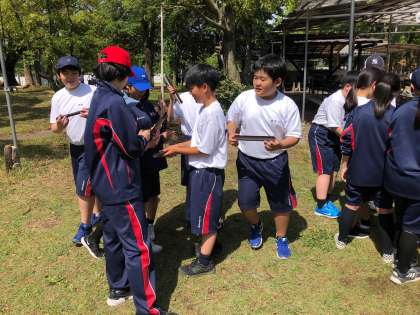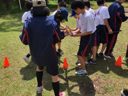 全員が了解でハーフパイプを持ち、ボールを運びます。