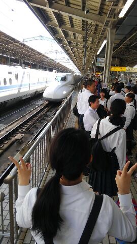 出発式を済ませ、元気よく新幹線に乗りこみました。