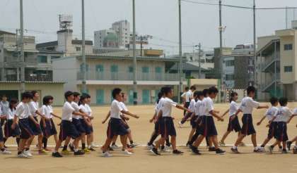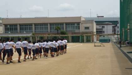 はじめての体育大会です。元気いっぱい声を掛け合って、行進の練習をしていました。