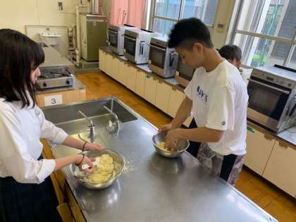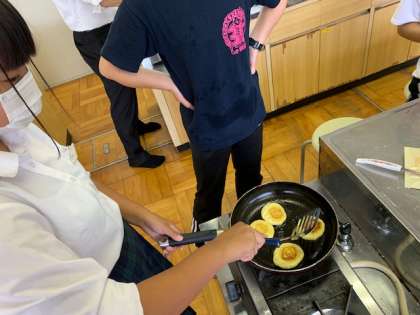 ぴりっと辛い「トッポギ」と、甘い「ホットク」を3年生が協力して作りました。