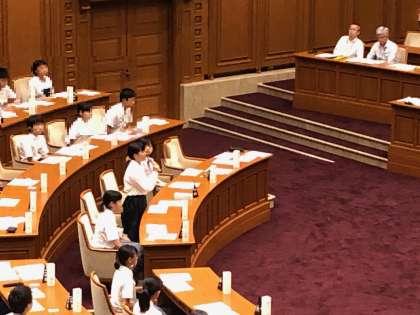 大阪市役所の市会本会議場で、恒例の「おおさか 子ども市会」が開催されました。