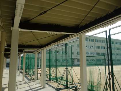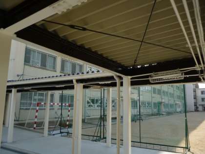 校舎から体育館へと続く渡り廊下を、管理作業員さんが長期間をかけて塗りなおしてくれました。