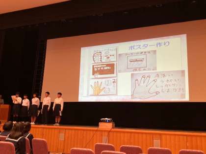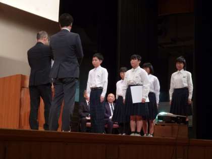 表彰の後、4校を代表して、活動の様子を報告してくれました。たくさんの人の前で、とても緊張しましたが、とてもしっかり発表することができました。