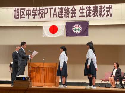 11月9日(土)、旭区民センターにて、区PTAが主催の生徒表彰式が行われました。