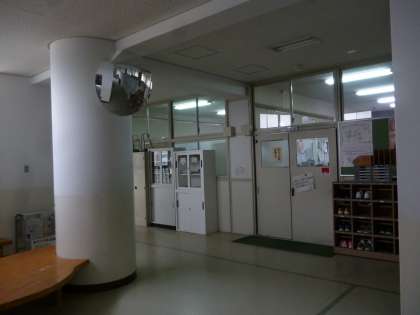 階段を上がってきて、校長室の方へ曲がる箇所が死角があり、出合頭にぶつかりそうになった経験がある人も多いのでは、と思います。