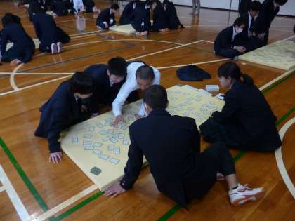 2年生は体育館で百人一首大会を行いました。