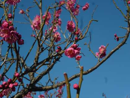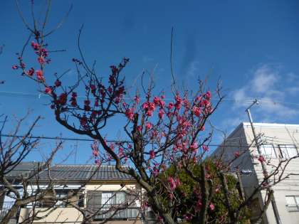 グランドの北側にある梅の木は、花がふくらんでいます。
