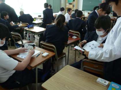毎年、ヒューマンキャンパス高校の先生をお招きし、トランプを使っての適性調べの学習を行っています。