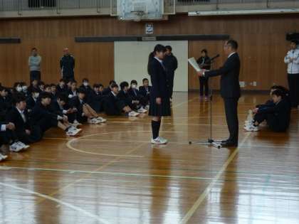 本校からは3年生と1年生の女子が、日本拳法の全国大会での活躍に対しての表彰を受けました。