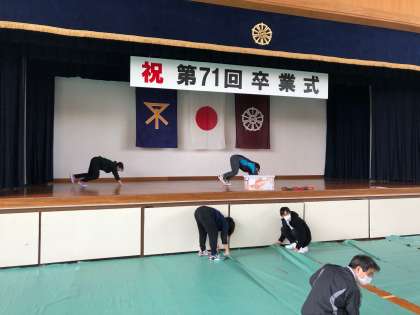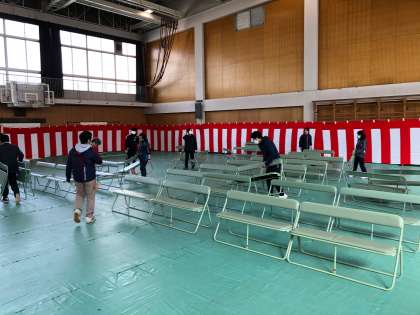 例年であれば、生徒の皆さんに手伝ってもらうのですが、今年は休業中なので、教職員だけで準備をしました。