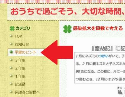左上のカテゴリ『学習のヒント』をクリックすると、