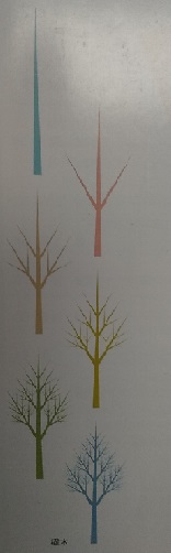 左側の「樹木」の図は、右側の『フラクタル図形』を応用して描いています。