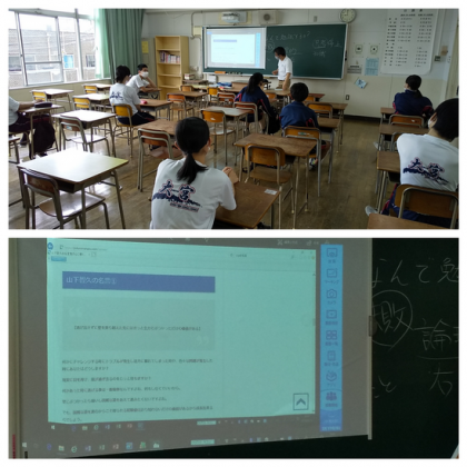 (写真上)社会オリエンテーションでは、『人はなぜ勉強するのか?』について、芸能人の言葉を引用しながら、みんなで意見交流しました。