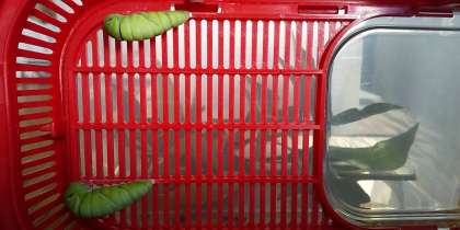 毎日、新しい葉っぱの補給とフン(ウンチ)掃除が続きます。