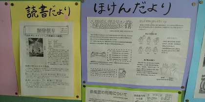 教室の後ろには何種類かの掲示物があります。その中の1つ『図書だより』では、「小説・君の名は」が紹介されていました。映画が大ヒットしてテレビ放映もあったので、観た人も多いのでは・・。
