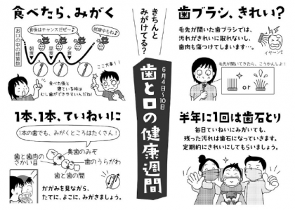 6月号では、『歯と口の健康週間』の話題の他、「二測定」等の注意が載っています。事前に読んでおいてくださいね。