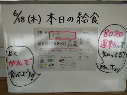 (写真上)1年生では、給食と健康管理についての情報が掲示されていました。8020を目指しましょう。