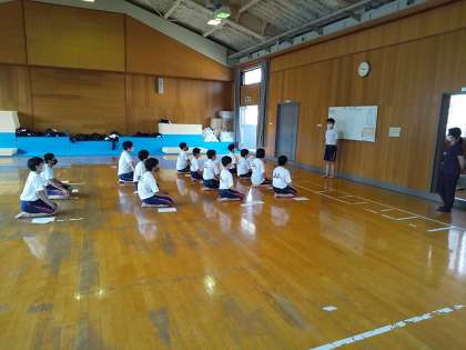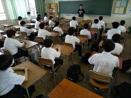 部活動を終えたソフトボール部の女子生徒2人が、廊下窓の上部を見上げて思案顔。確かめると、外に出ようとする「トンボ」が窓に激突を繰り返していました。バレーボール部のM先生がほうきの柄でうまくクレセント錠を開けて、「トンボ」は脱出成功。