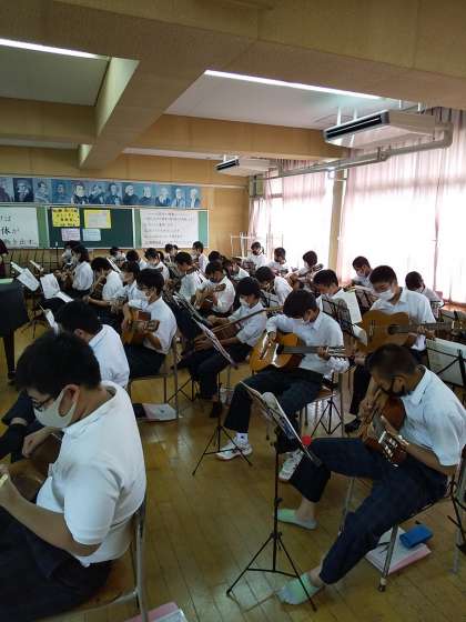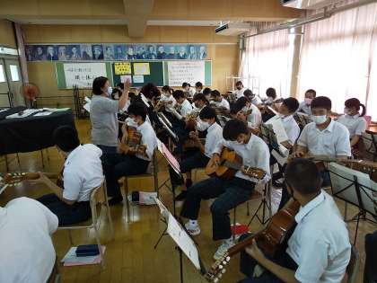感染症対策を講じながら、音楽実技の楽しさをいかに伝えるか・・。その1つとして、『クラシックギター』に取り組んでいます。