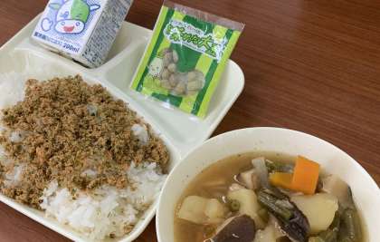 給食では、「紅ざけそぼろ」のほかに「ツナ大豆そぼろ」「牛ひじきそぼろ」などが登場しています。