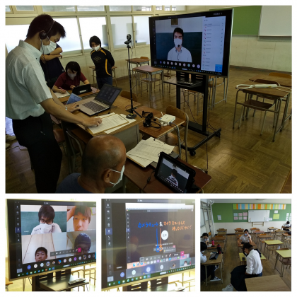 Teamsを使って、学校・自宅・校内の別教室を結んでのクラスミーティング(接続確認)を行いました。