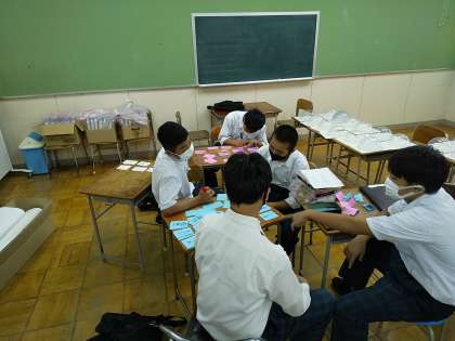 放課後のミーティングルームでは、1日目夜のプログラム『レクリエーション大会』に向けて準備する生徒の姿がありました。