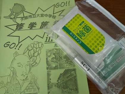 Go to トラベルの支援を活用して、全員に感染症キット(アルコールスプレー、除菌シート、カード型体温計)を持たせます。