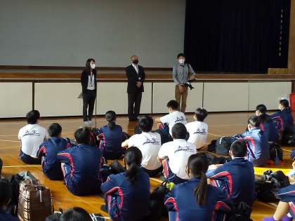 代表生徒の挨拶に続き、同行いただく添乗員と写真館の方々の紹介と挨拶がありました。