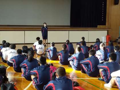 いま一度、一人ひとり検温してから体育館で出発式をしました。