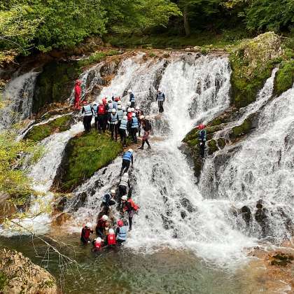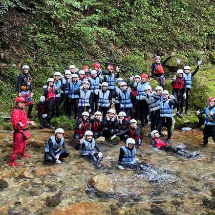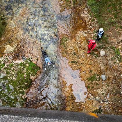 距離は300メートルくらいでしたが、途中飛び込んだり流れたり、水のかけ合いをしながら約1時間くらいかけて歩きました。