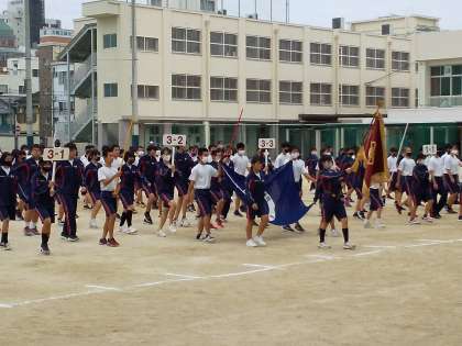中間テスト(2日目)を終え、午後からは体育大会の全体練習を行いました。